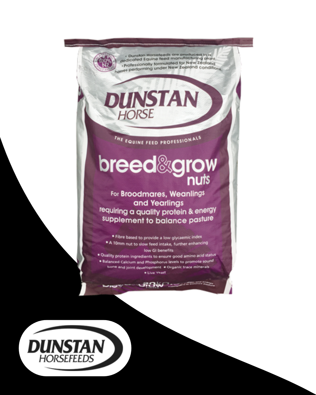 Dunstan Breed & Grow is a low-starch, high-fibre pellet formulated to provide quality nutrition to the pregnant and lactating Mare and Young Growing Horse.