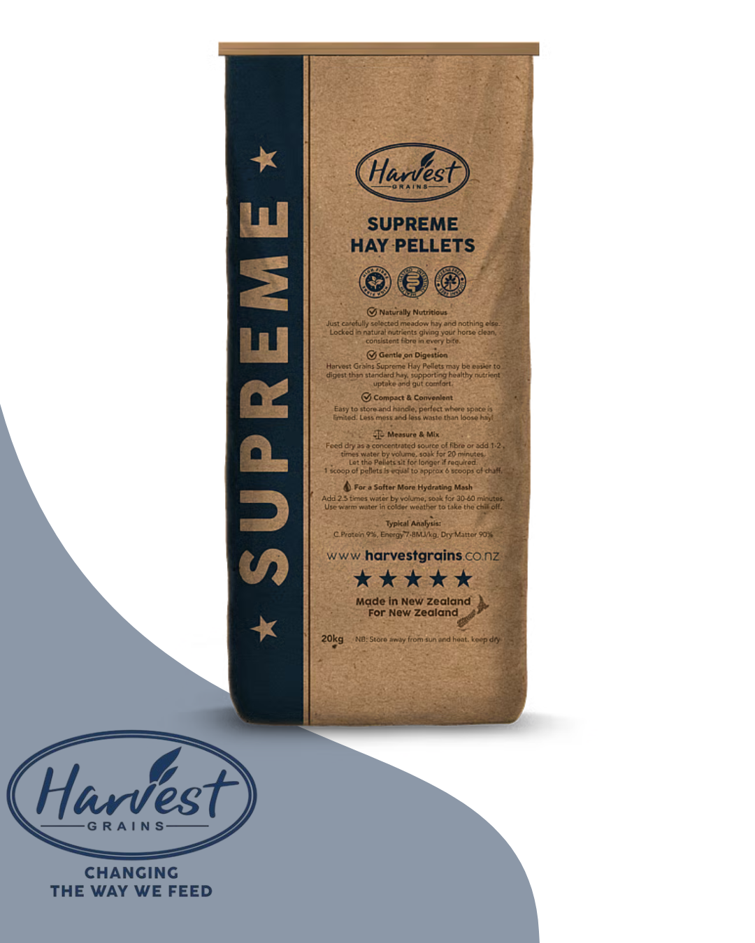 Made from carefully selected weed free unseeded hay, Supreme Hay Pellets™ lock in natural nutrients — giving your horse clean, consistent fibre in every bite.